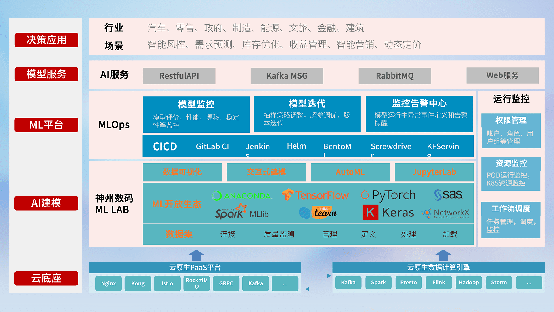数据+模型双引擎驱动,,面向智能服务场景,,快速灵活利用AI技术,,,支持业务决策,,,助力企业智能化转型破局。。。。
